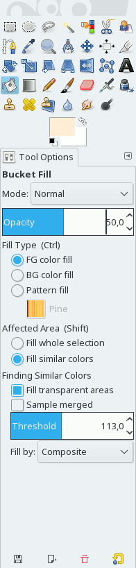 - Geef de voorgrondkleur de kleur die je wilt gebruiken (hier beetje geel/bruin)