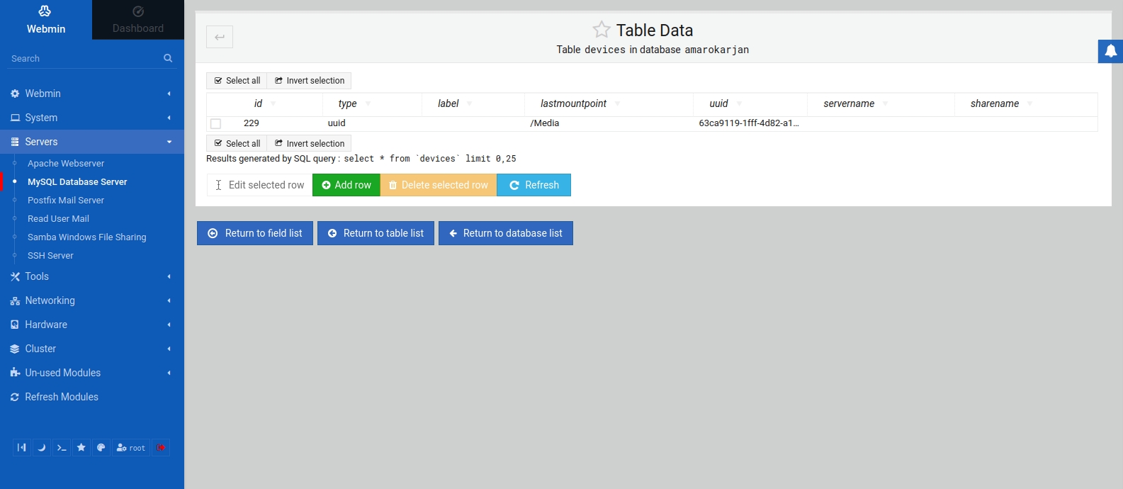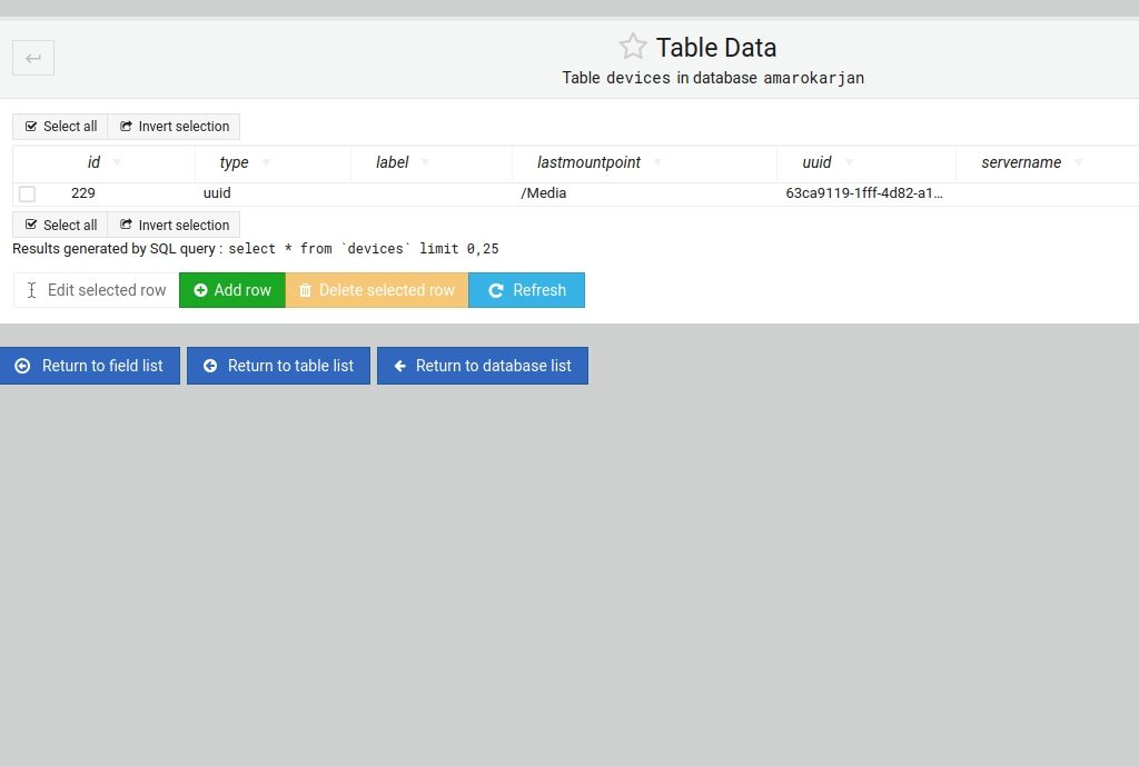 Stap 1: ga de database in en bekijk de data in de tabel devices. Noteer deze. (Mogelijk staan er nog vele entries in die niet (meer) gebruikt worden, verwijder deze).