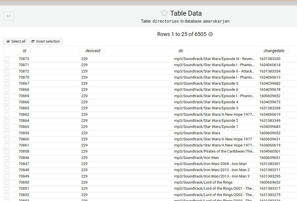 Een directory is dus de waarde van lastmountpoint (uit devices) met id 229.