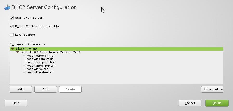 Advanced – Interface Configuration (op welke interface moet je DHCP los laten)
