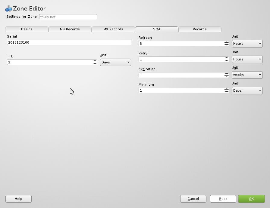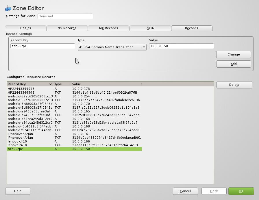 Plaats heir alleen een record voor de huidge machine, de configured resoruce records gaat via de dhcpd-dns koppeling (Dynamic DNS).