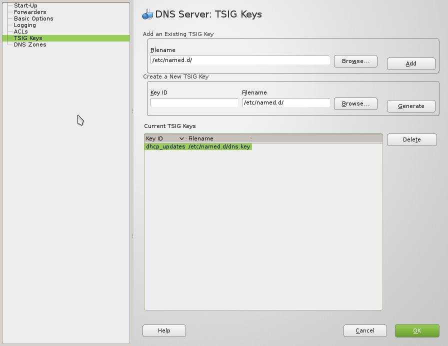 Maak een key aan en  onthoud de filenaam, heb je straks bij DHCP nodig als je Dynamic DNS wilt gebruiken (aan te raden). Als je dat niet wilt gebruiken hoef je ook geen key aan te maken.