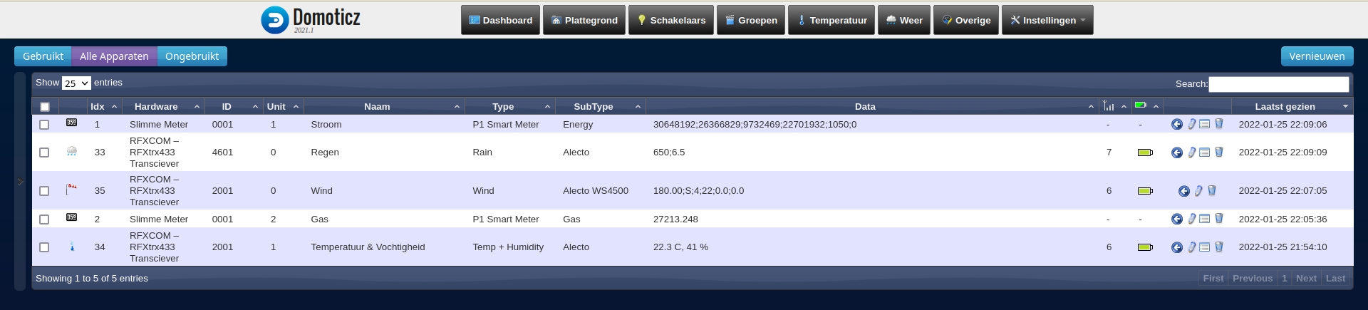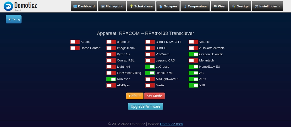 Selecteer bij de RFXCom – RFXtrx433 transciever defeault protocollen PLUS Rubicson.